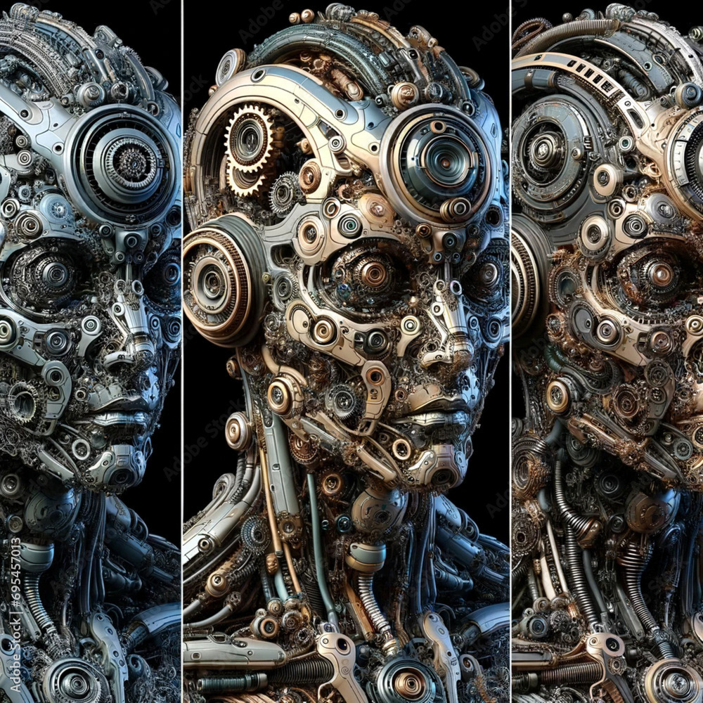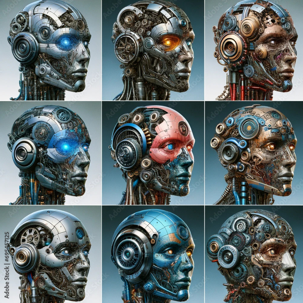 The "Robot" page on the Ai Global Art website features a collection of robot images created by artificial intelligence. These visual works are designed using modern platforms like Lexica AI, Leonardo Ai, and Dall-E 3. Each image is available for purchase through Adobe Stock, highlighting a unique collaboration between human creativity and artificial intelligence in producing innovative artworks.